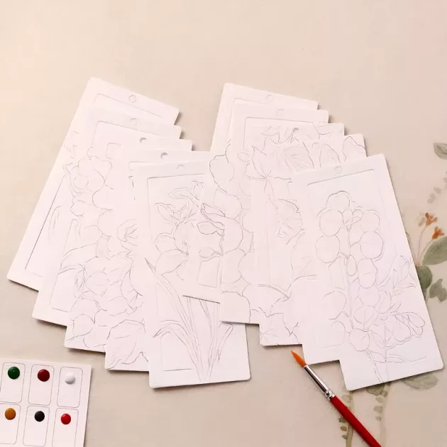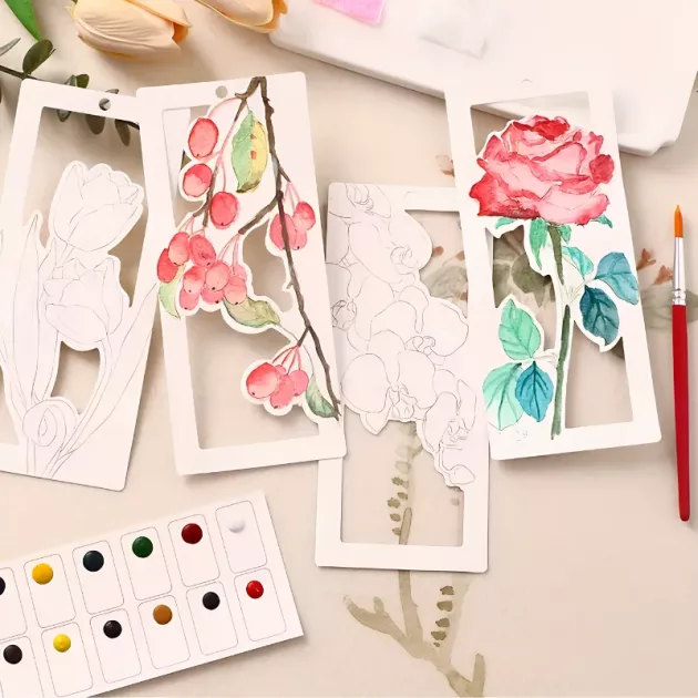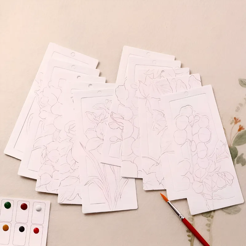 Incoraggia l'immaginazione e'apprendimento attraverso il divertimento pratico della pittura. I bambini si divertono a creare segnalibri unici che riflettono la loro personalità. Ogni foglio è una tela bianca, che rende ogni creazione speciale. Colori vivaci e disegni semplici mantengono le manine concentrate e felici.