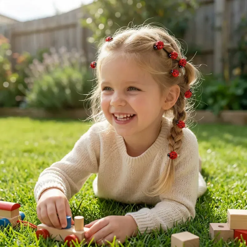 Gioia Istantanea - Le colorate forme di coccinella trasformano semplici trecce in storie magiche. Le reazioni felici compaiono subito, rendendo foto, feste e uscite ancora più speciali.