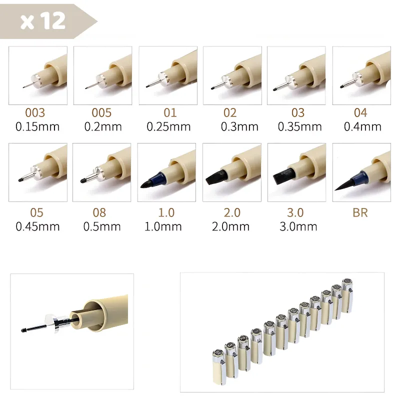 Opzioni di Disegno Versatili - Favorisci la crescita artistica con una varietà di punte diverse. Ogni penna supporta vari progetti come fumetti, architettura e schizzi di prodotti.