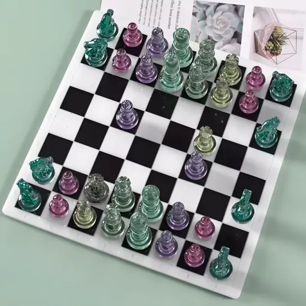 La mamma mi ha aiutato con la resina, e ora ho il set di scacchi più bello al club della scuola. Anche i miei amici mi chiedono come l’ho fatto!