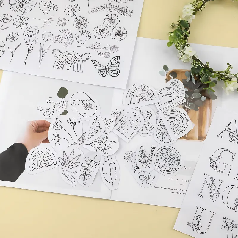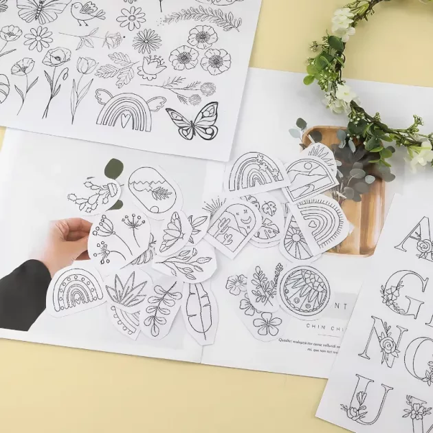 Il tuo bambino adorerà dare vita ai disegni usando questi fogli ingegnosi. Nessuna abilità complicata di ricalco o disegno è necessaria per ottenere risultati bellissimi. I bambini sorrideranno vedendo i fiori sbocciare sui loro vestiti o accessori.