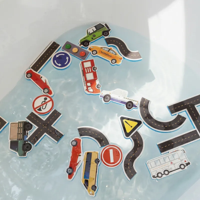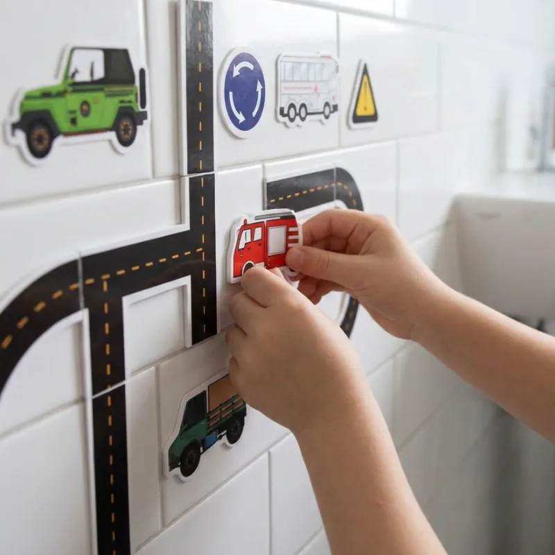 Rendi ogni lavaggio un'avventura giocosa con entusiasmanti adesivi per piastrelle da bagno. Veicoli creativi, strade e segnali si attaccano facilmente alle piastrelle, dando vita a infinite storie. I bambini si divertono a costruire la propria scena cittadina mentre tu ti rilassi, sapendo che il bagnetto è senza disordine.