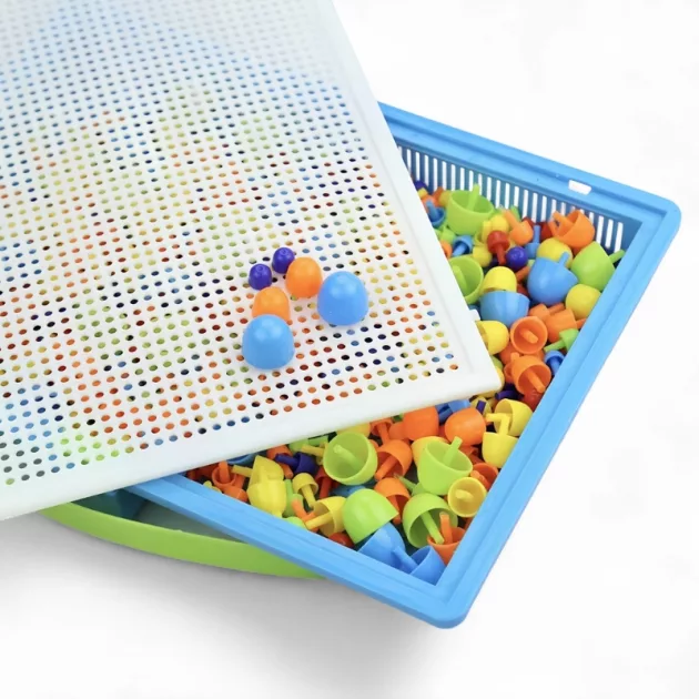 Con 296 pezzi vivaci, il puzzle con pioli Kidzly migliora rapidamente le abilità motorie fini. I bambini possono seguire gli schemi o inventare i propri mosaici vivaci. È un modo divertente per sviluppare la coordinazione occhio-mano e potenziare il riconoscimento dei colori.