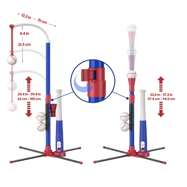 Tee regolabile - L'altezza può essere modificata per adattarsi a diversi giocatori, aumentando l'efficienza dell'allenamento. I bambini possono migliorare il loro swing regolando il supporto in base al loro livello di comfort.