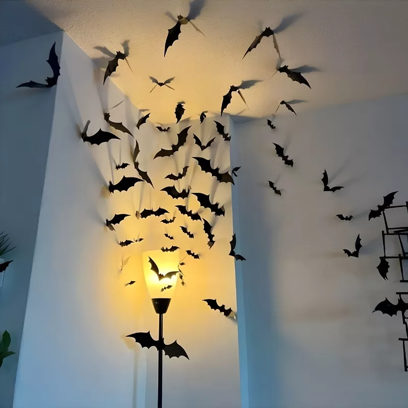 Decorare con questi pipistrelli è stato facile e divertente. Abbiamo trasformato il soggiorno in una casa infestata, e dopo non è rimasto nulla attaccato al muro.