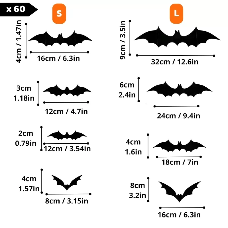 Abbiamo messo questi pipistrelli in tutta la cucina e sono rimasti su perfettamente. I bambini si sono divertiti a creare forme spaventose sul muro e la pulizia è stata velocissima!