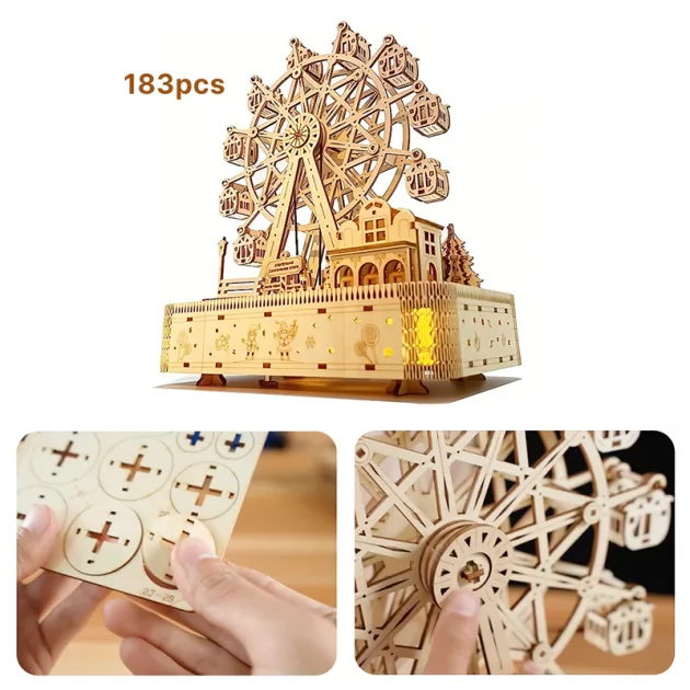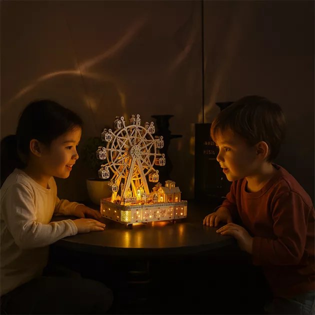 Guarda gli occhi di tuo figlio illuminarsi mentre costruisce qualcosa di magico. Ogni pezzo si incastra perfettamente, mantenendo le mani occupate e la mente concentrata. Questa deliziosa ruota panoramica porta musica e una luce delicata in ogni stanza. Godetevi insieme momenti tranquilli creando ricordi indimenticabili.