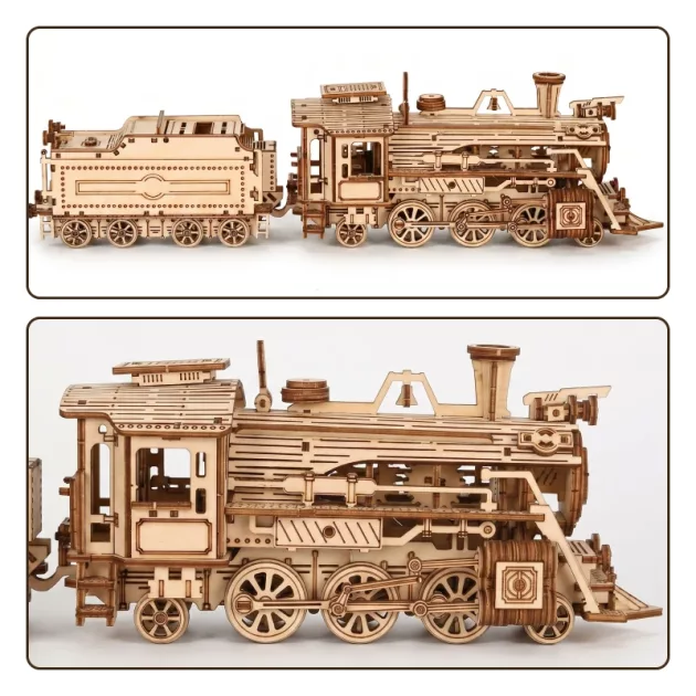 Puzzle modello treno 3D in legno Kit fai-da-te con blocchi di costruzione Giocattolo educativo per bambini