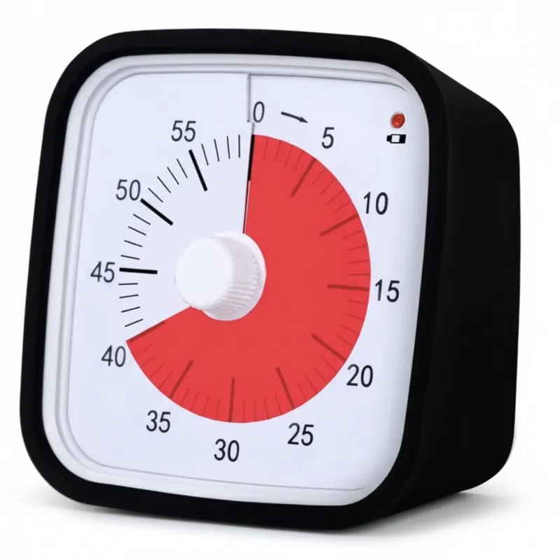 Portiamo questo timer al tavolo della scuola a casa ogni giorno. A mia figlia piace guardare lo spazio rosso che si restringe, e le lezioni finiscono con molte meno lamentele.