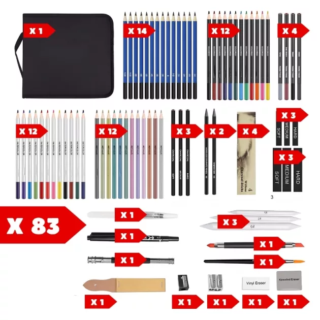 Varietà Tutto in Uno - Ogni elemento essenziale è incluso per disegno, schizzi e pratica di colorazione. Non c'è bisogno di cercare materiali extra o preoccuparsi per oggetti mancanti.