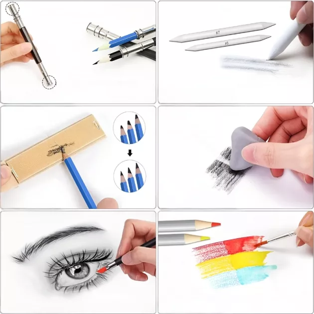 Mi è piaciuto trovare così tante cose nella custodia! Il mio preferito è mescolare pastelli e matite, ora i miei disegni sono molto più interessanti. Lo consiglio davvero.