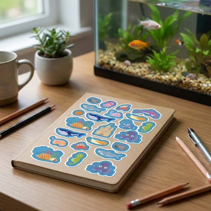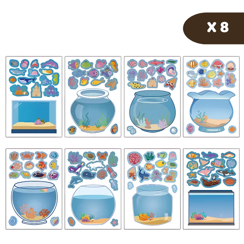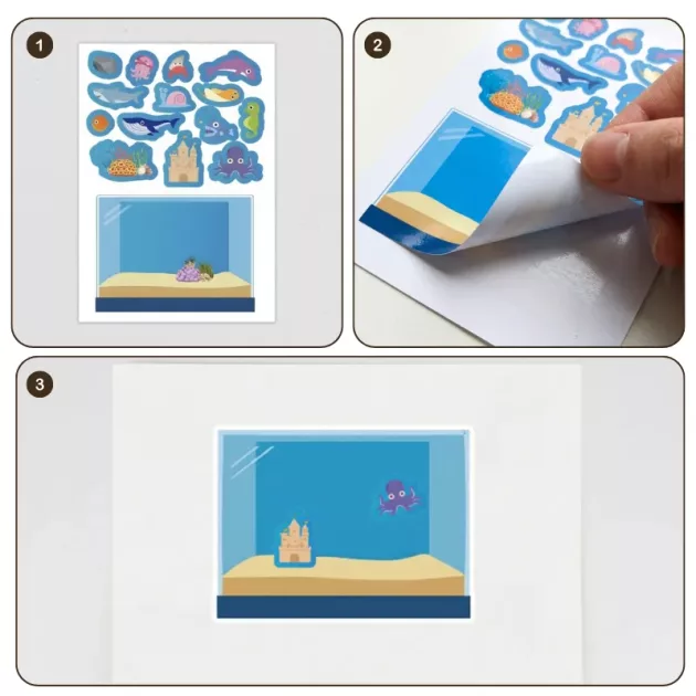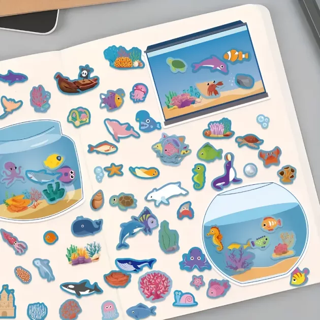 Trasforma qualsiasi pomeriggio piovoso in un viaggio creativo. Gli adesivi dai colori vivaci portano la magia dell’oceano alla vita. Ogni attività tiene impegnate le piccole mani e ispira la mente. Goditi momenti di unione e risate mentre tuo figlio costruisce il suo acquario dei sogni.