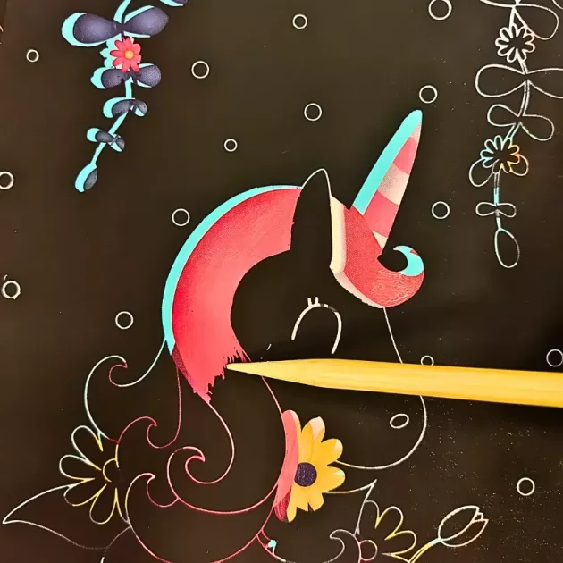 Adoro come le mie mani restano pulite mentre gratto i miei disegni. I colori vivaci mi sorprendono ogni volta. È così divertente dopo cena!