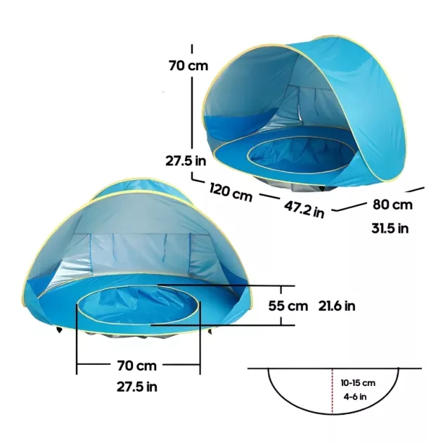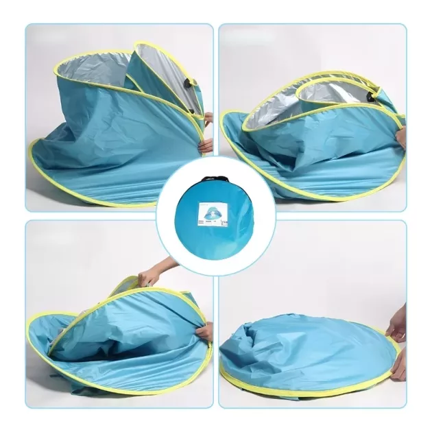 Design pop-up - La tenda si monta in pochi secondi senza attrezzi, risparmiando tempo e riducendo lo stress in spiaggia. Si ripiega completamente per essere riposta senza problemi, entrando facilmente nel bagagliaio di qualsiasi auto o in un armadio.