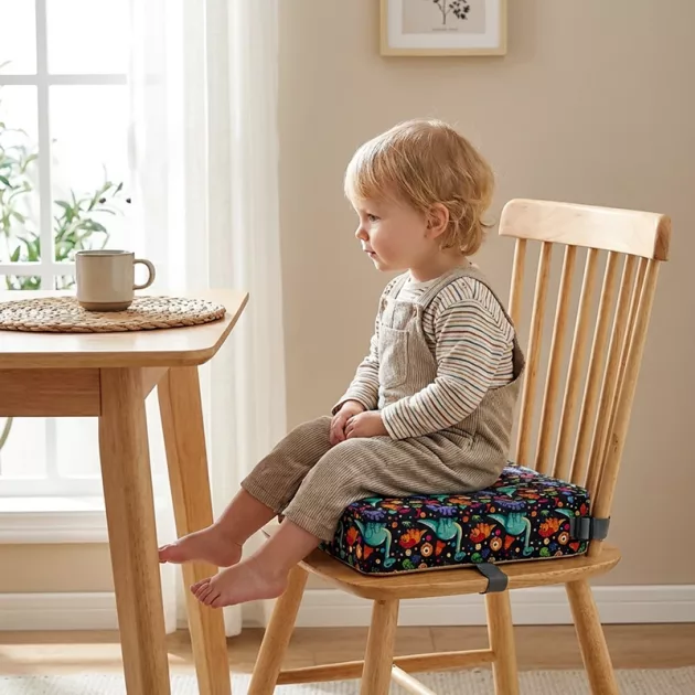 Finalmente, un cuscino che rimane al suo posto! A mio figlio piace molto sedersi con noi ora e il suo cibo non finisce più dappertutto.