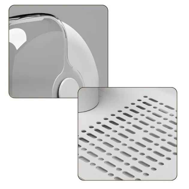 Rimozione Efficiente dell'Acqua - Il vassoio removibile e il sistema di drenaggio impediscono la formazione di ristagni sottostanti. Rimani libero dall'umidità e consenti un'asciugatura rapida sempre.