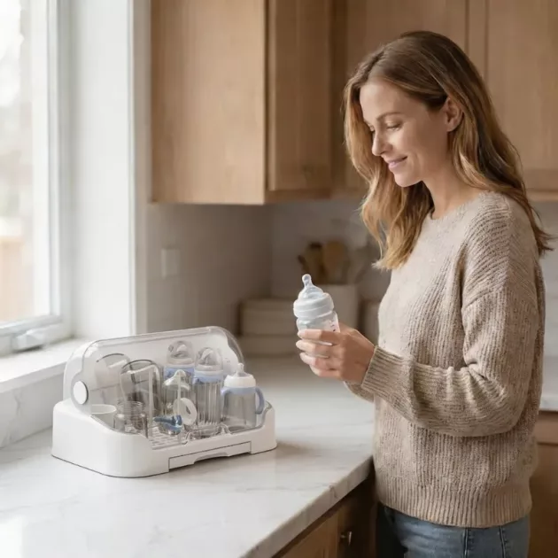 Questa scatola è una salvezza per gli spazi piccoli. Niente più biberon sparsi ovunque! La porto facilmente dalla cucina alla camera da letto.