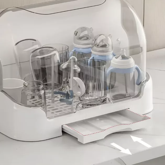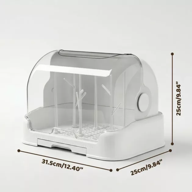 Adoro come i biberon del mio bambino rimangono privi di polvere in questa scatola di asciugatura. Mi semplifica la vita e tiene tutto in un unico posto ordinato.