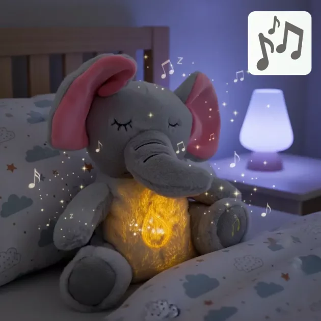 Ogni abbraccio con questo peluche aiuta il mio bebé a rilassarsi. È morbido al tatto e la dolce luce notturna rende magica la cameretta di notte.
