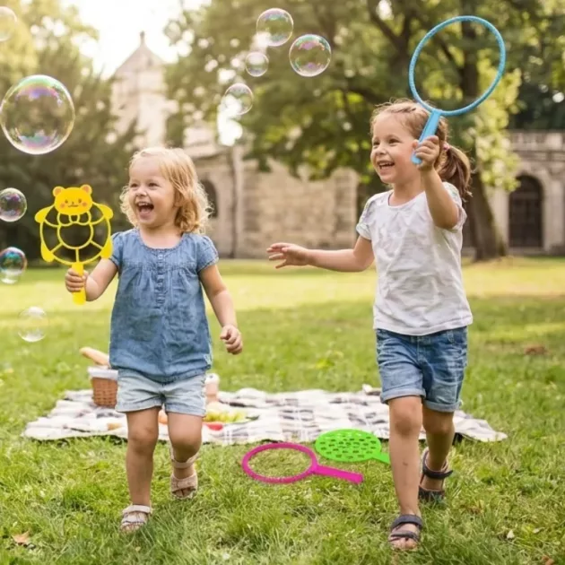 Il kit ha reso molto più entusiasmante il pomeriggio di gioco con i miei cugini. Inseguivamo le bolle, facevamo forme e nessuno si è annoiato per tutto il pomeriggio.