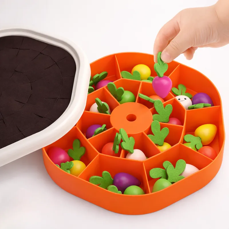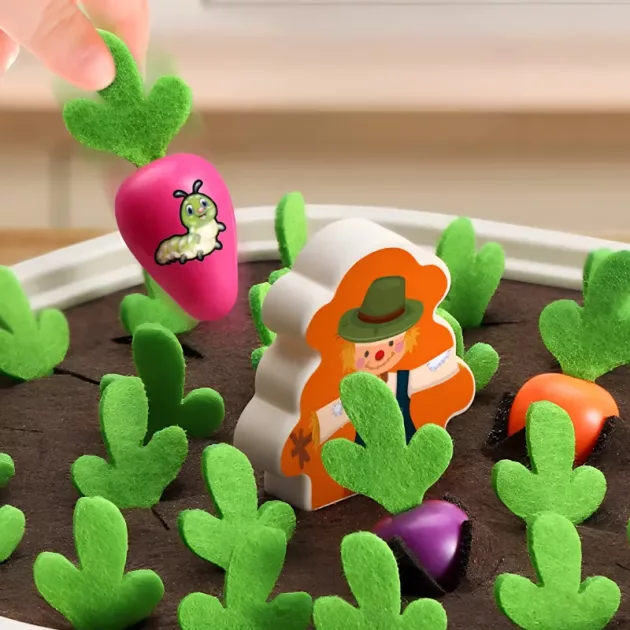 Abilità Motorie - Tirare e posizionare i pezzi incoraggia il controllo e la precisione dei movimenti della mano. Afferrando e spostando ogni ortaggio si promuovono destrezza e coordinazione.