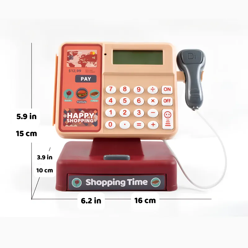 Usare la cassa per giocare al negozio è diventato il gioco preferito del weekend per mia figlia e la sua migliore amica. È facile da usare per i più piccoli e molto colorata.