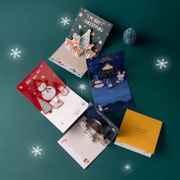 umina la stagione festiva della tua famiglia con gioiose scene 3D. Ogni design unico permette ai bambini di condividere creativamente auguri speciali. Goditi un'attività semplice che unisce gli affetti per momenti significativi.