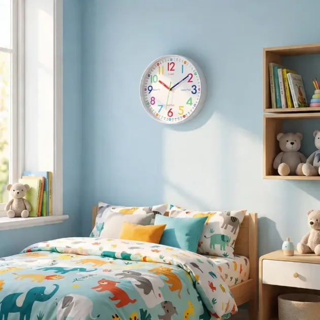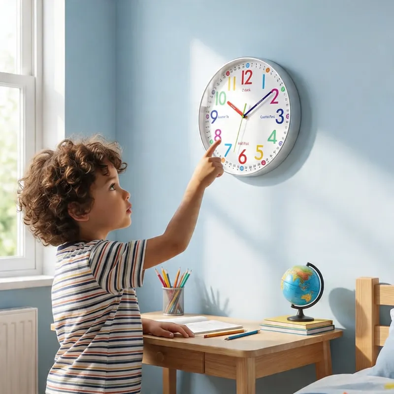 Numeri vivaci trasformano ogni sguardo in una semplice comprensione dell’ora. Etichette chiare guidano la lettura rapida dei minuti, costruendo una fiducia duratura. Il movimento silenzioso evita distrazioni e favorisce compiti a casa tranquilli e concentrati.