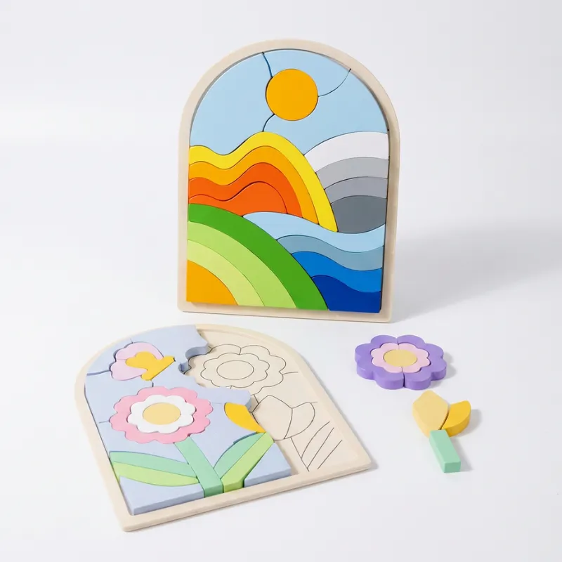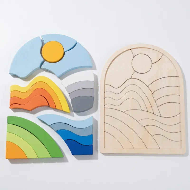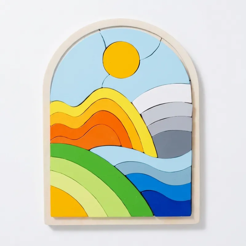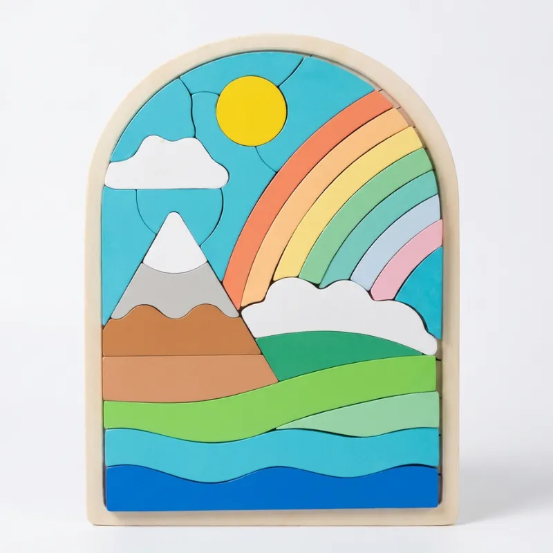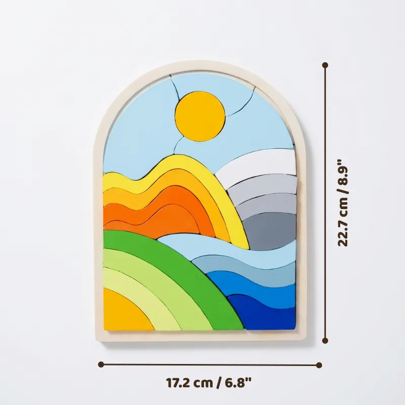 Stimola l'immaginazione con ogni vivace pezzo di legno. Le capacità di problem solving sbocciano mentre il tuo bambino esplora il puzzle. Le mani restano impegnate a scoprire forme uniche e splendidi motivi. Imparare diventa gioioso e senza stress per tutta la famiglia.