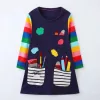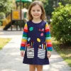 Carino vestito in cotone a maniche lunghe con tasche per bambini