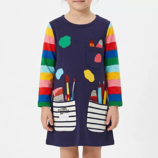 Ho comprato questo dolce vestitino per mia nipote e non smette di girare su se stessa. I colori sono allegri, il tessuto è delicato e lei ama nascondere adesivi nelle tasche.
