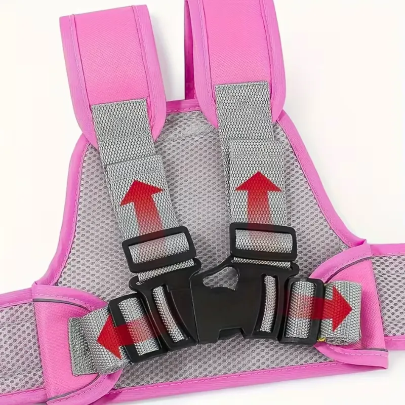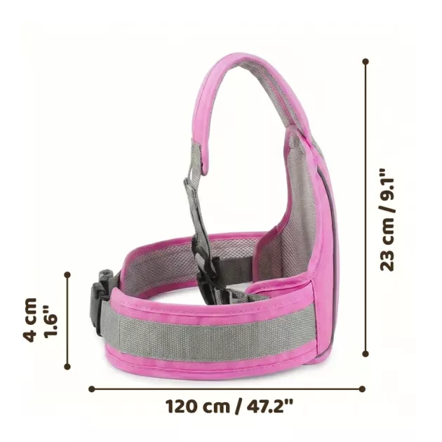 Supporto sicuro - L’ampia imbracatura distribuisce delicatamente la pressione su torace e vita. Cuciture rinforzate e clip robuste resistono a strattoni durante sobbalzi o frenate.