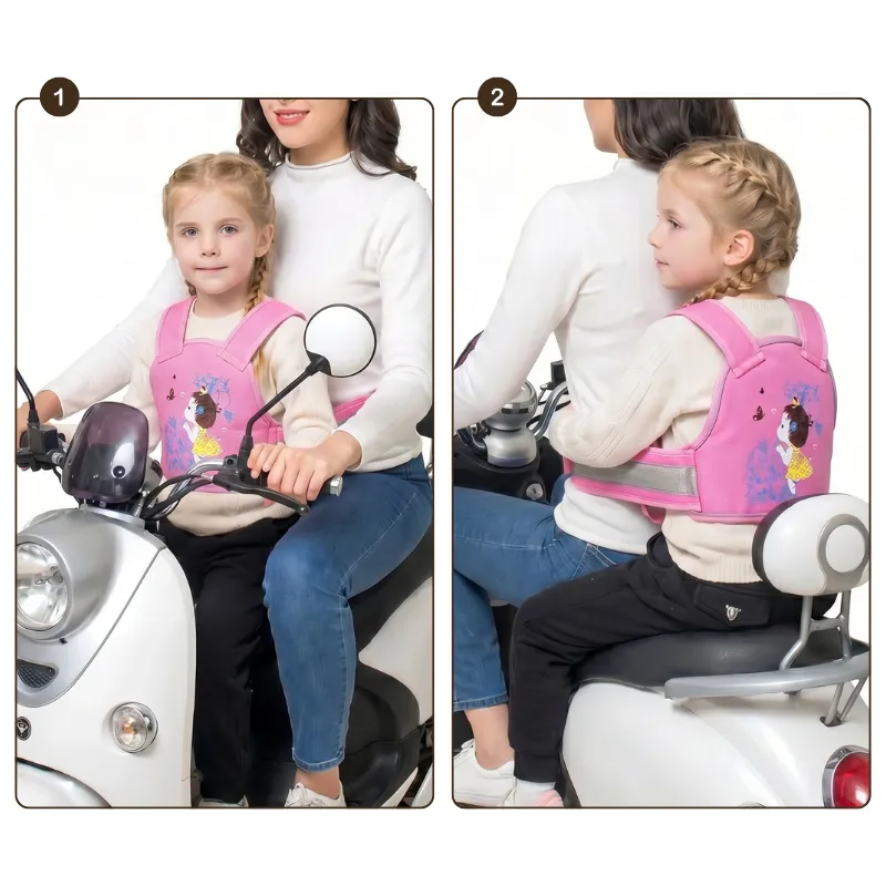 I genitori ottengono tranquillità sapendo che ogni uscita è sotto controllo. Personaggi vivaci incoraggiano una collaborazione entusiasta durante le gite quotidiane in scooter o in bicicletta. Le robuste fibbie rimangono ben chiuse, così i movimenti improvvisi non causano scivolamenti.
