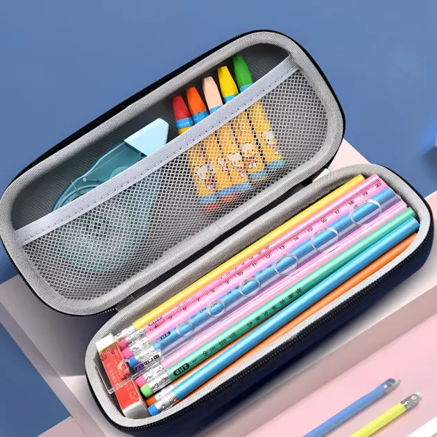 Molto pratico da avere a scuola. I colori vivaci rendono la mia scrivania ancora più speciale. La cerniera funziona benissimo, anche quando faccio in fretta a sistemare tutto.