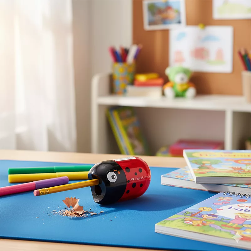 Questo temperamatite entra nel mio astuccio e il viso del personaggio lo rende facile da trovare anche in uno zaino pieno.