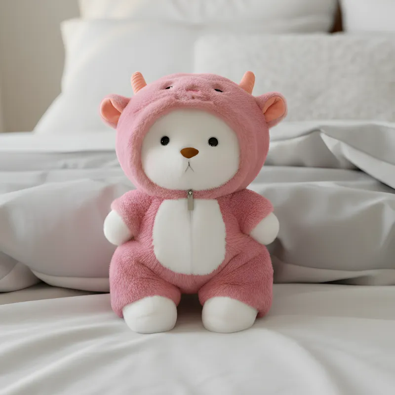 Questo adorabile amico porta calore e gioia a casa. Il suo design con cappuccio aggiunge un tocco giocoso a ogni momento. I bambini amano abbracciare questo compagno, e i genitori apprezzano la facilità di cura.