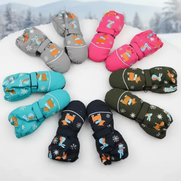 Ogni genitore desidera tranquillità durante il divertimento invernale. Questi colorati guanti a manopola proteggono da vento, neve e pioggia. I materiali soffici all’interno mantengono le dita dei più piccoli al caldo tutto il giorno.