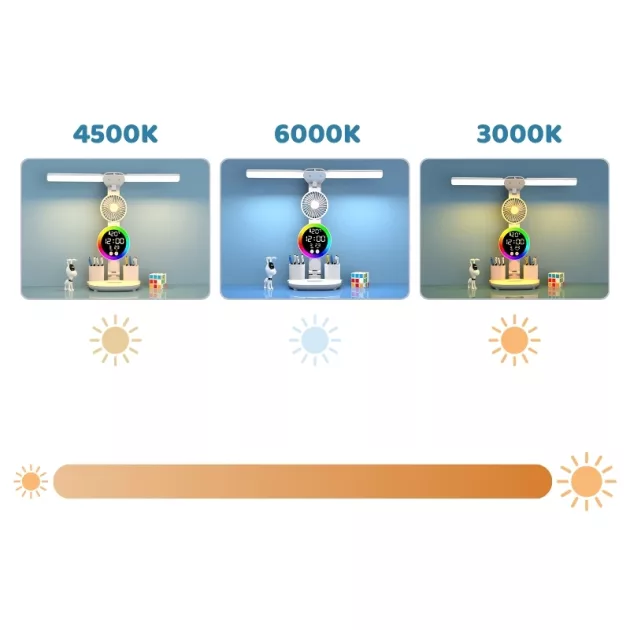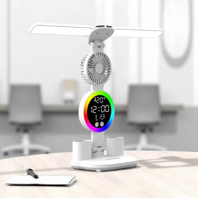 multifunctional desk lamp, reading light, desk lamp with fan, cooling fan, clock display