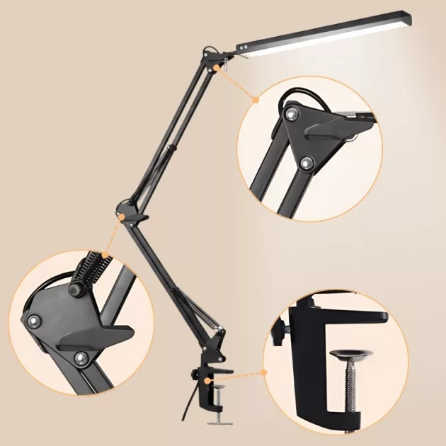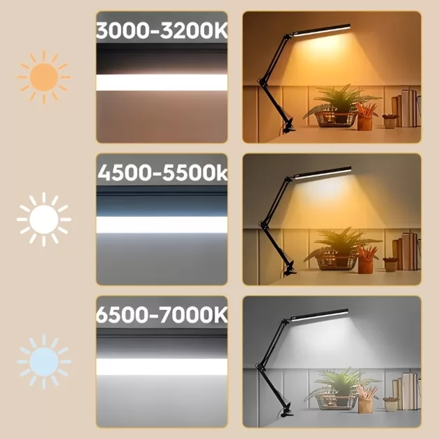 Lampada da scrivania dimmerabile con clip regolabile per lettura con morsetto