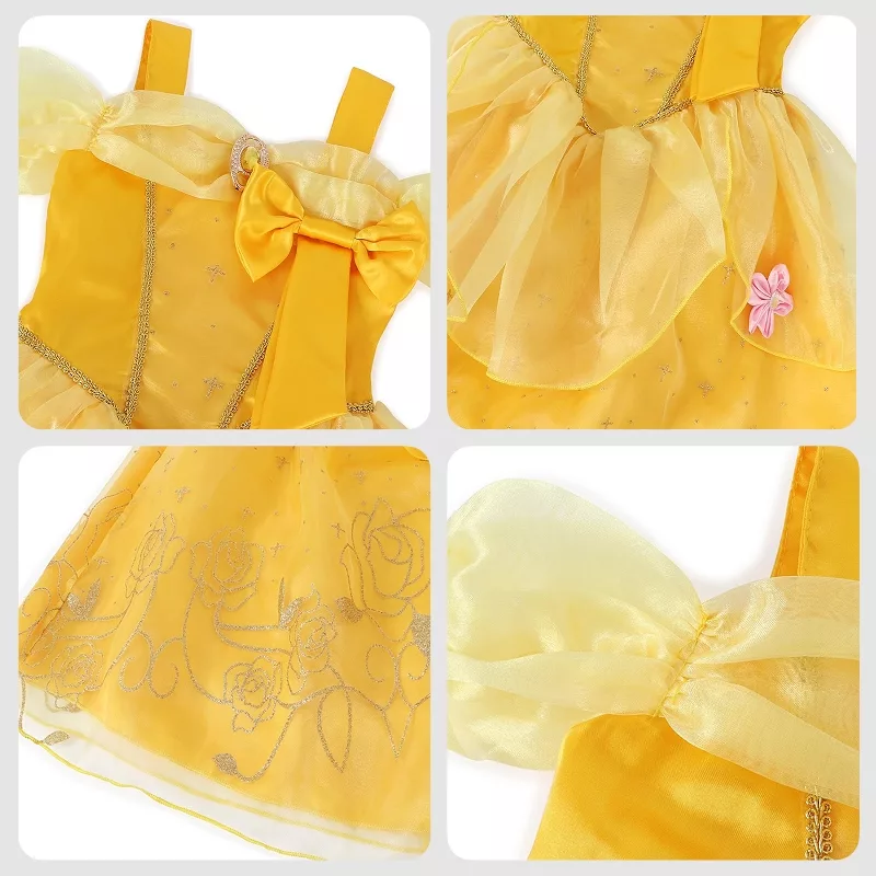 A mia figlia è piaciuto tantissimo questo vestito di Belle! Ha girato per casa tutto il giorno dicendo di sentirsi una vera principessa. Anche il tessuto è super morbido, per niente pruriginoso.