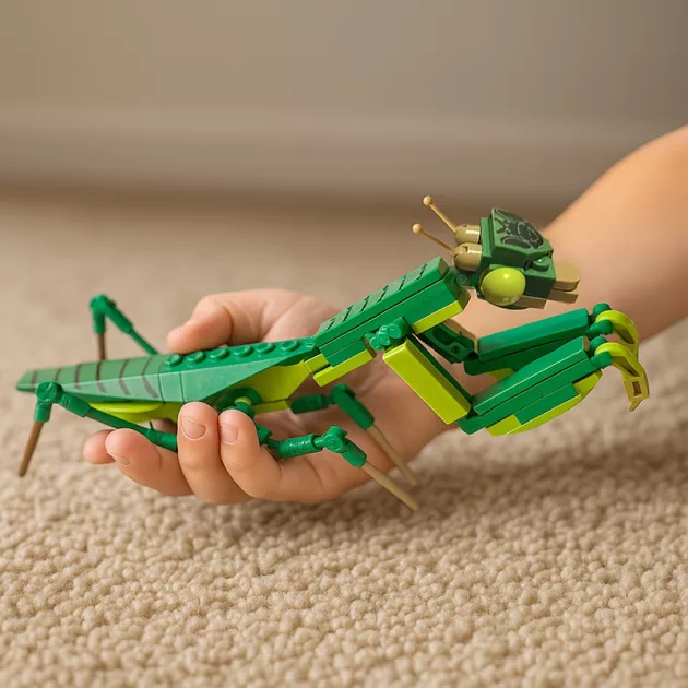 Il nostro soggiorno è pieno di animali costruiti coi blocchi. I miei figli mescolano i pezzi e si sorprendono sempre con nuovi insetti.