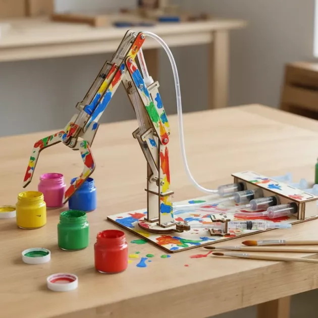 Apprendimento STEM pratico - Esplora la robotica costruendo un braccio idraulico funzionante. Sviluppa la comprensione della pressione, del movimento e le capacità di problem solving.
