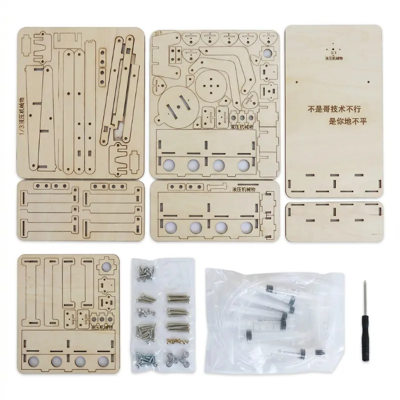 Modello di Braccio Meccanico Idraulico in Legno Fai-da-te Esperimento Scientifico Giocattolo da Assemblare per Bambini