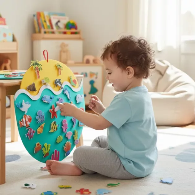 Ottimo per le manine che imparano ad afferrare e collegare. Il feltro è molto delicato e le attività stimolano tanta creatività a casa.