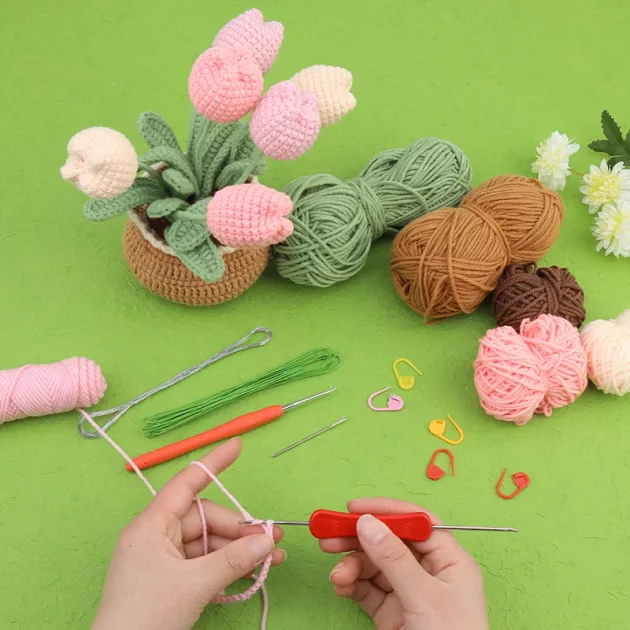 crochet kit, flower crochet kit, crochet beginner kit,