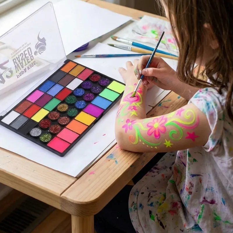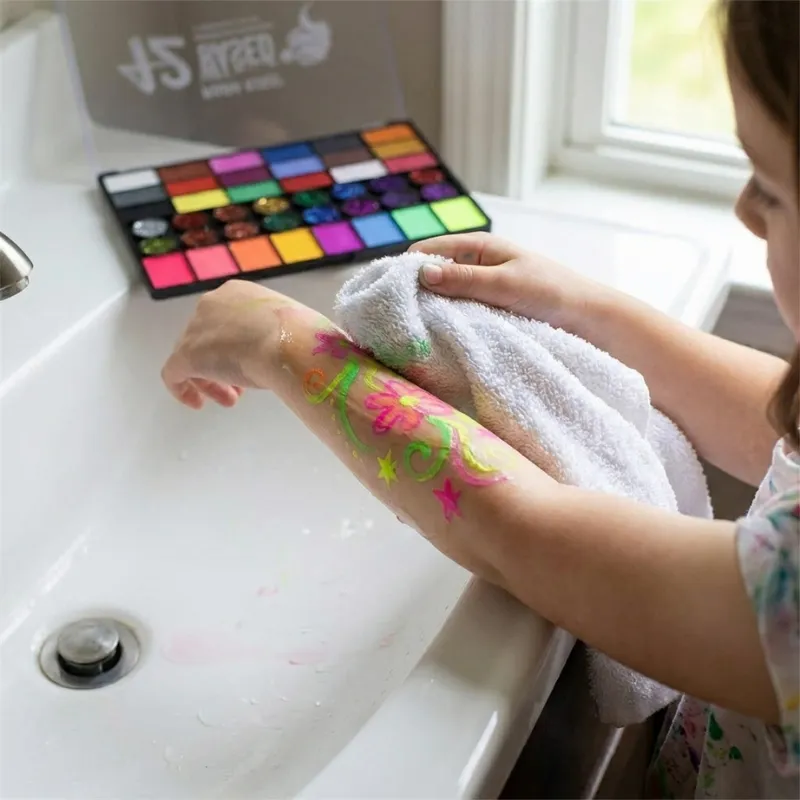 I miei bambini hanno la pelle molto sensibile, quindi ero prudente. Questa pittura non ha mai causato rossori e i colori vivaci hanno reso la loro glow party ancora più divertente.