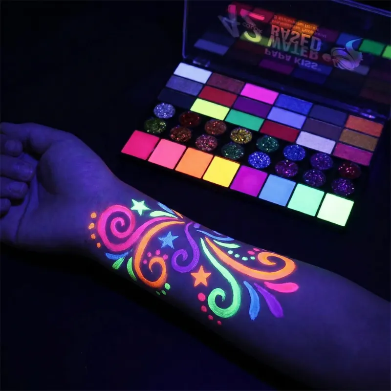 Ho preso questo set di colori per la festa fluo di mia figlia. I colori erano super brillanti sotto la luce nera e si sono lavati via facilmente sotto la doccia dopo.