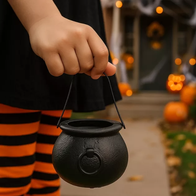 Facile da portare e contiene davvero tanto! La forma del calderone rende dolcetto o scherzetto ancora più speciale.