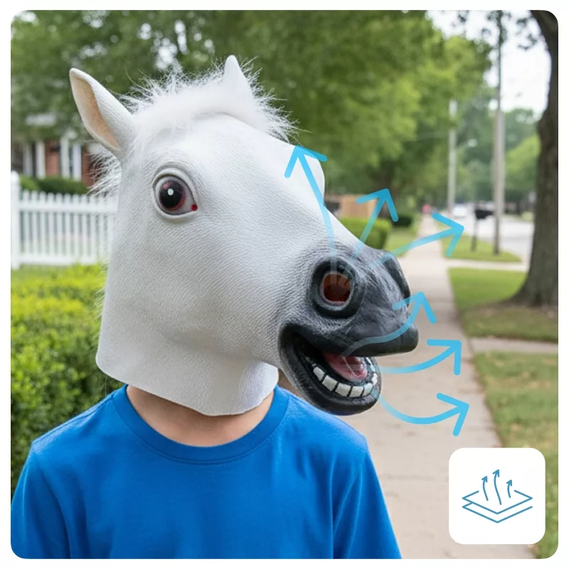 I bambini adorano travestirsi e mostrare la loro immaginazione. Il design unico della testa di cavallo porta risate a ogni evento. Semplice da indossare, questa maschera si adatta comodamente ed è leggera. Il robusto materiale in vinile assicura che rimanga sicura durante il gioco.