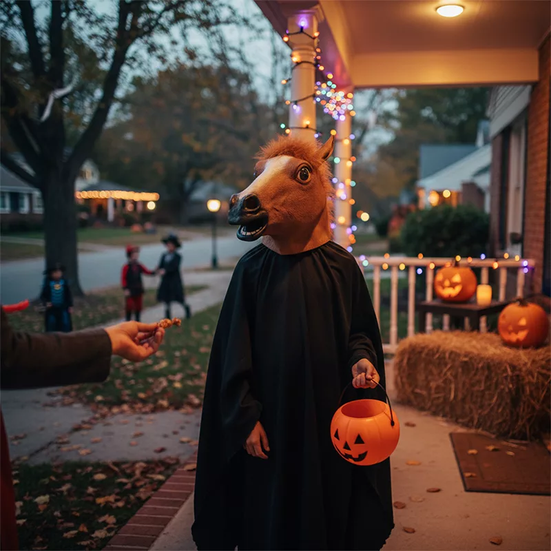 Abbiamo portato questa maschera da cavallo a una festa di compleanno ed è diventata l’attrazione principale. Mio cugino l’ha amata così tanto che l’ha tenuta per tutta la sera.